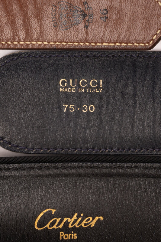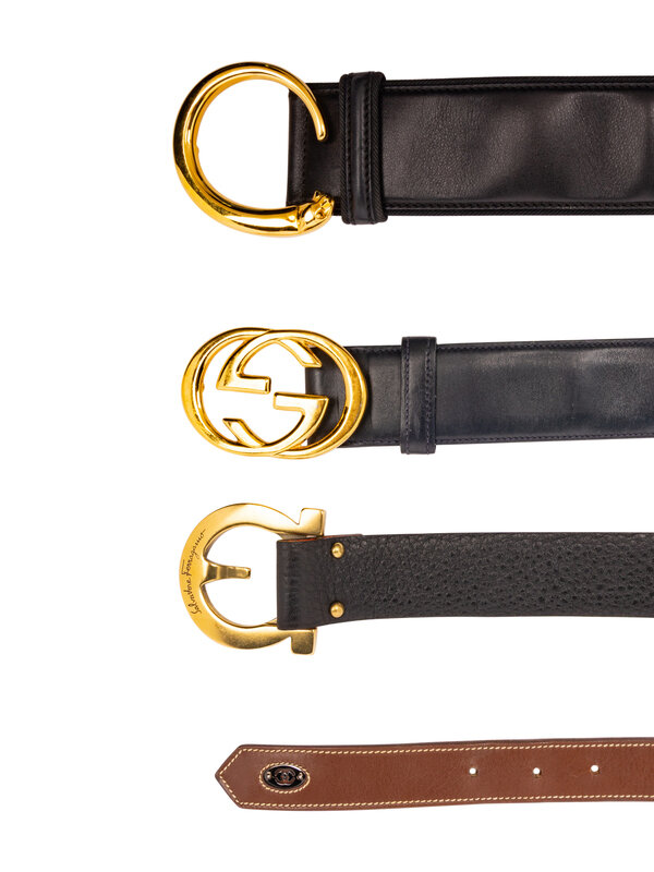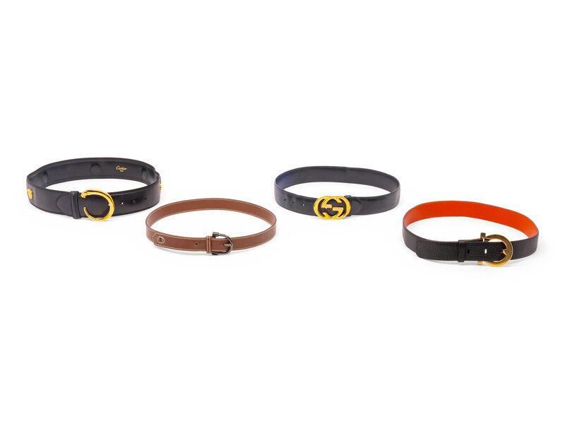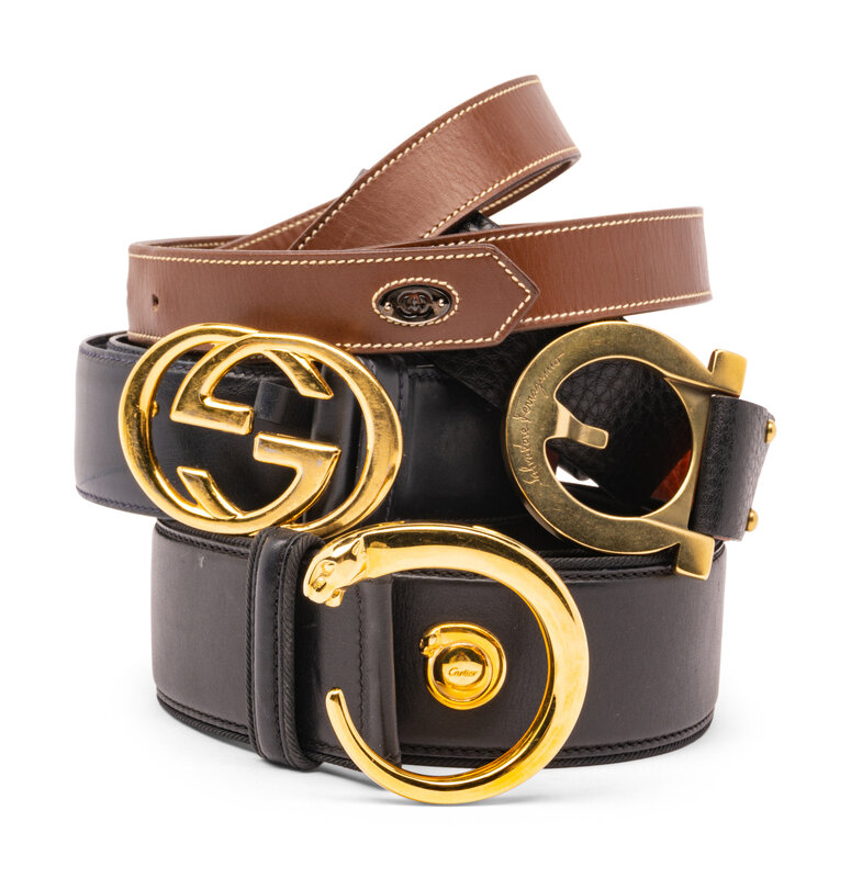 Group of Four Designer Belts by Gucci, Cartier, and Salvatore Ferragamo