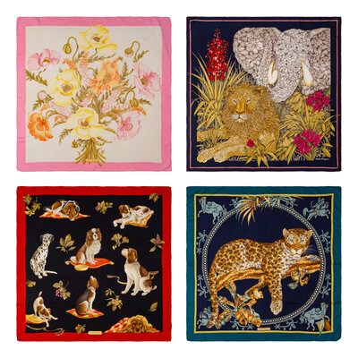 Four Salvatore Ferragamo Scarves