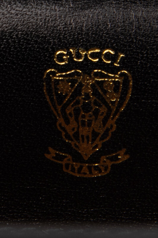 Additional Information: Brushed gold-tone hardware; push-lock closure; leather and nylon textile lining.