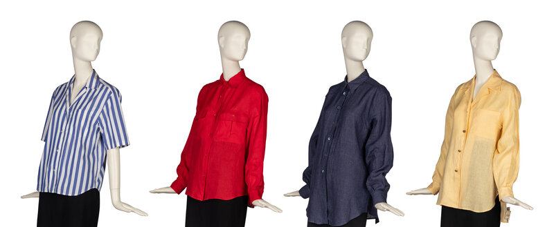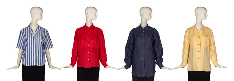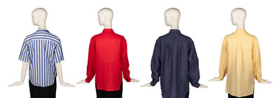 Long-sleeve linen button-down shirt in red linen. Two patch pockets at chest.