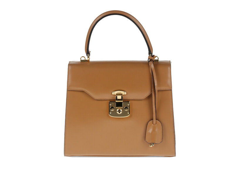 Gucci Small Top-Handle Flip Lock Bag in Tan Leather with Gold-Tone Hardware