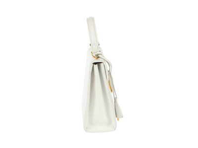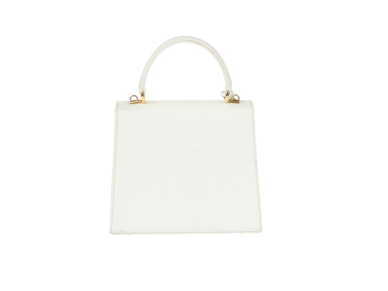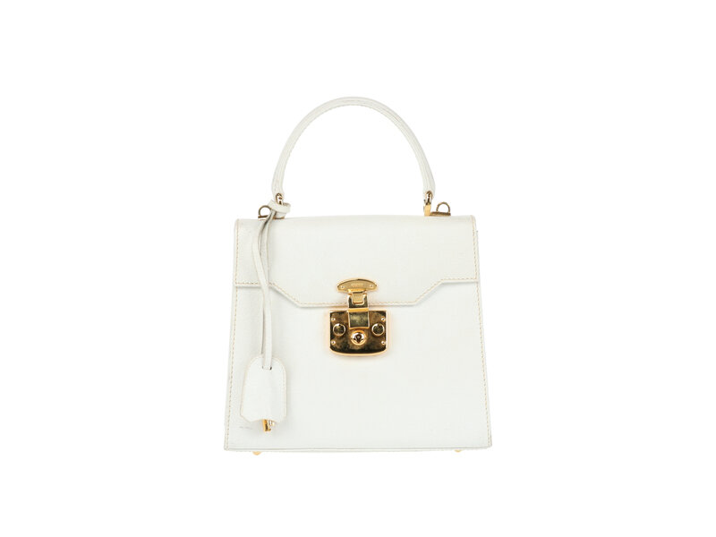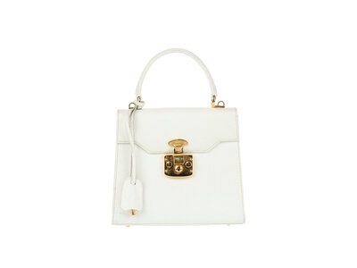 Gucci Small Top Handle Flap Satchel in White Cinghiale Leather with Gold-Tone Hardware and Detachable Shoulder Strap