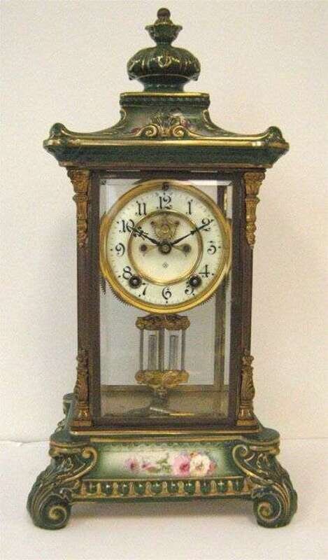 Ansonia Clock Co. porcelain and gilt metal mounted mantle clock