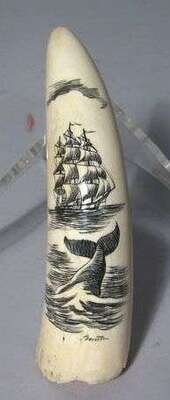Scrimshaw maritime decorated whale's tooth