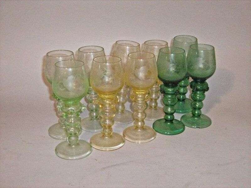 Eleven Venetian Style Yellow and Green Glass Goblets