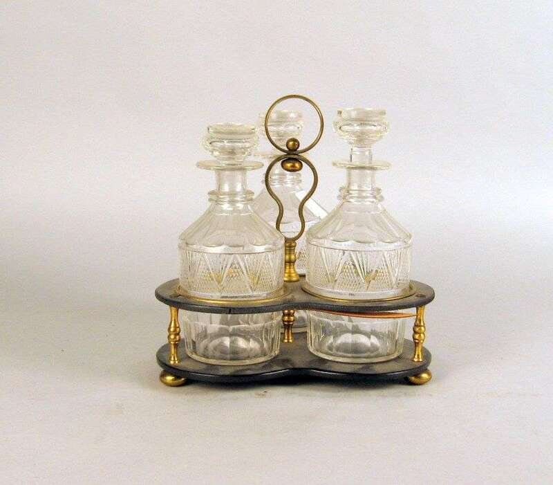 With three cut glass decanters.