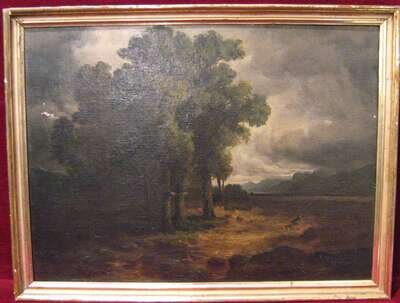 C* WEBER (AMERICAN 19TH CENTURY) LANDSCAPE WITH FIGURE AND DOG