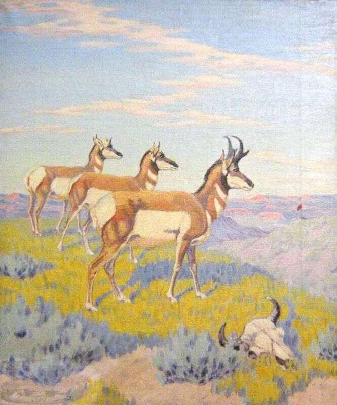 AMERICAN SCHOOL (20TH CENTURY) PRONGHORN ANTELOPE IN COLORFUL DESERT LANDSCAPE
