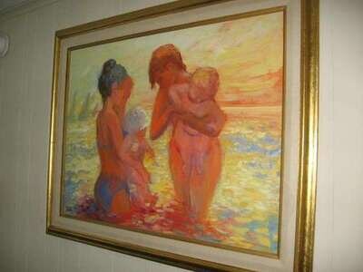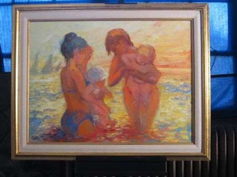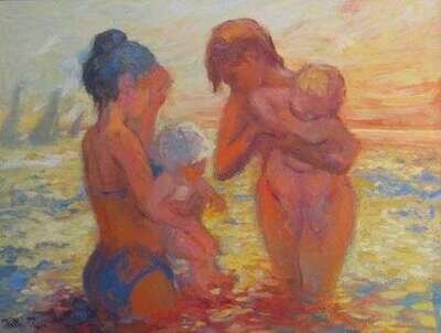 MARTHA MOORE (AMERICAN B. 1902) MOTHERS AND CHILDREN ON BEACH
