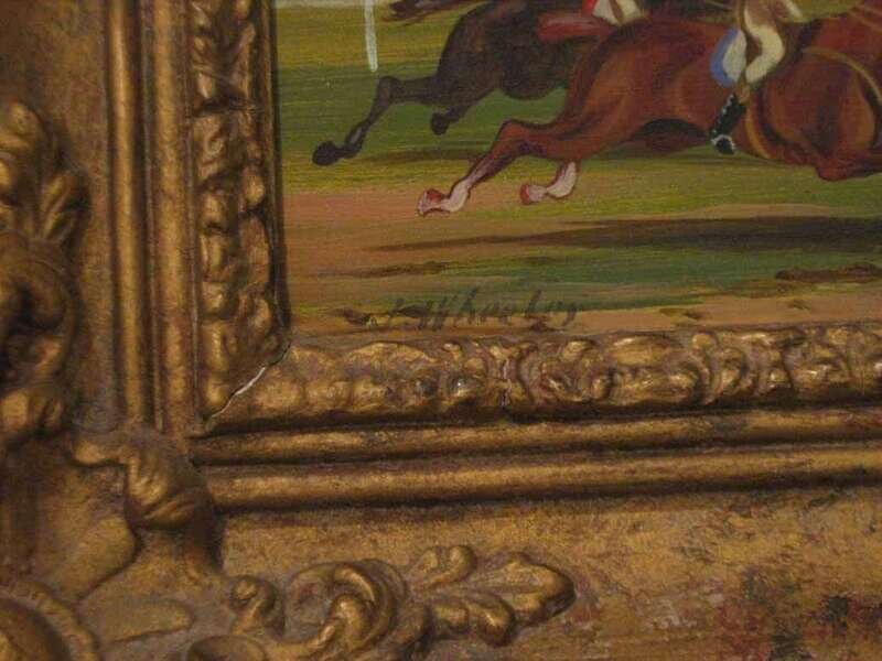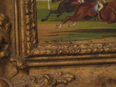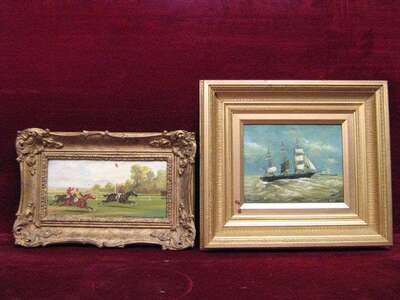 8 x 9 3/4 in. together with horse race sceen, oil on board, signed 'J Wheeler' lower left