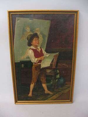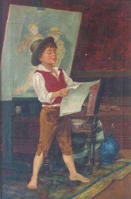 oil on canvas of a boy reading the paper