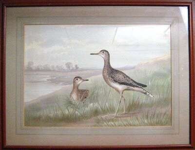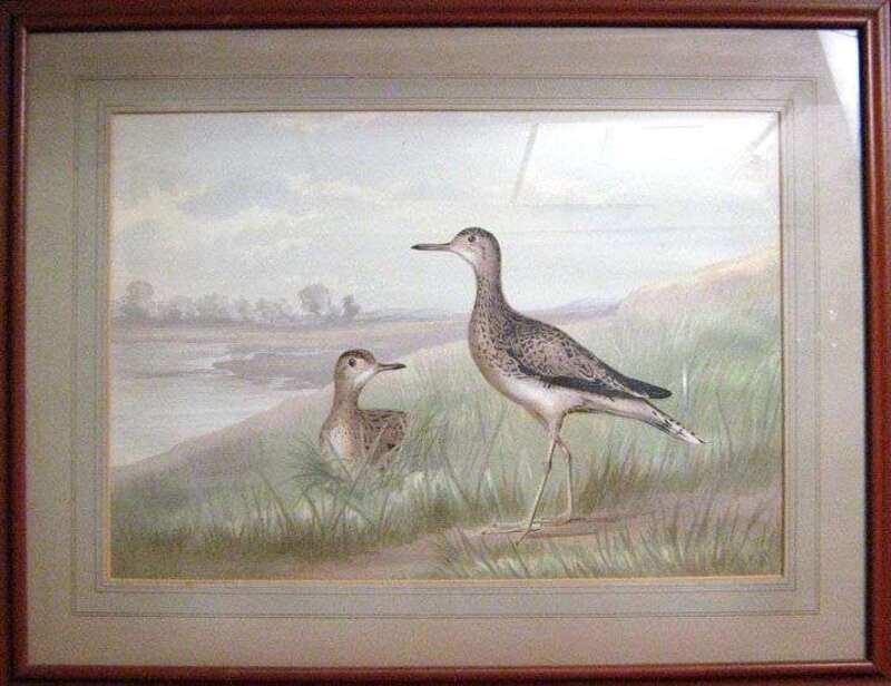 FRAMED COLORED LITHOGRAPH OF PLOVERS