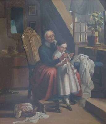and GRANDMOTHER WITH GRANDDAUGHTER KNITTING