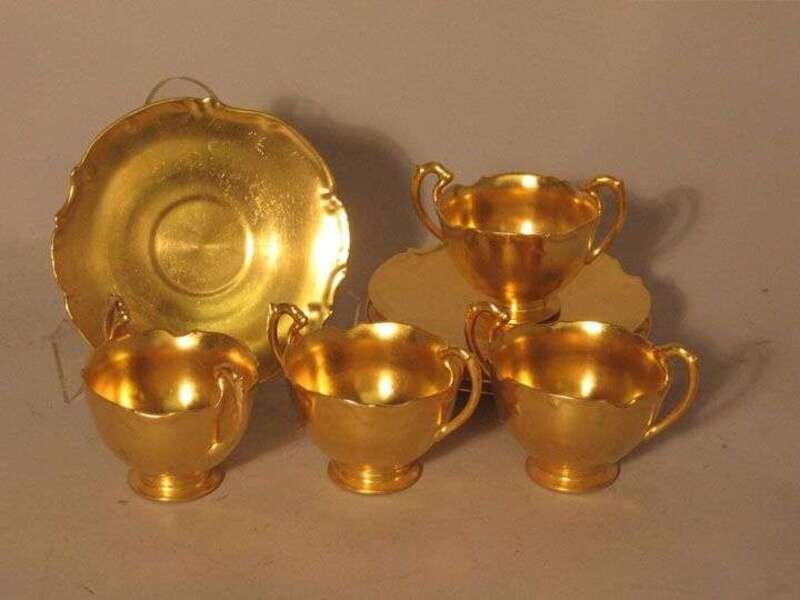 Twelve Limoges porcelain gilt bouillon stands with saucers