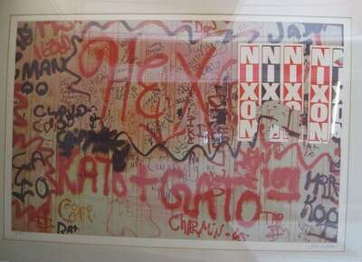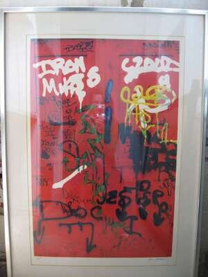 Pair of Graffiti prints, in brushed aluminum frames; signed in pencil lower right