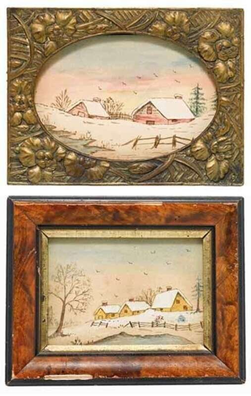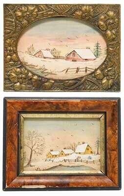 Two miniature landscapes in winter.