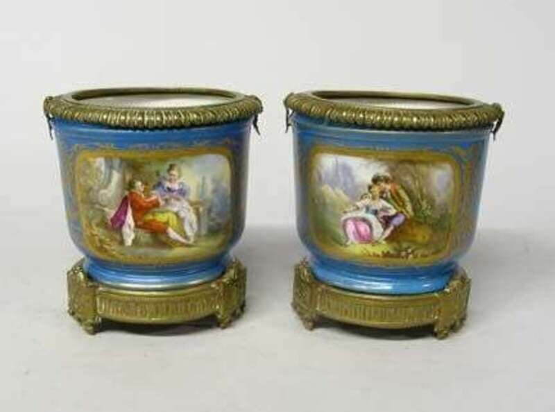Pair of Sevres style porcelain and gilt bronze mounted cachepots late 19th century