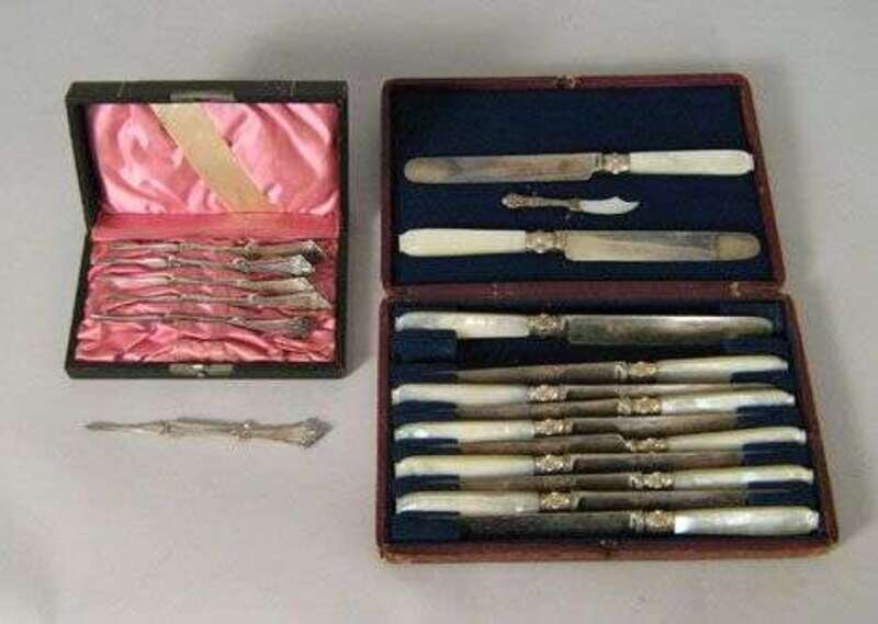 Set of 12 silver plated fruit knives with pearlized handles