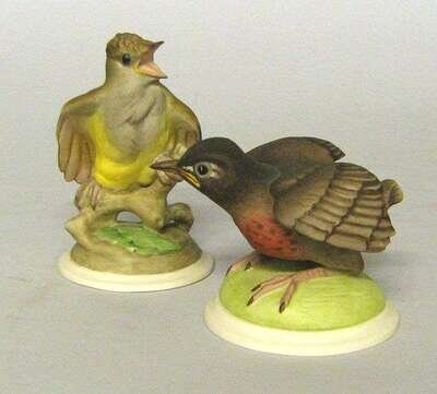 H of Flycatcher: 5 in. H of Robin: 3 3/4 in.