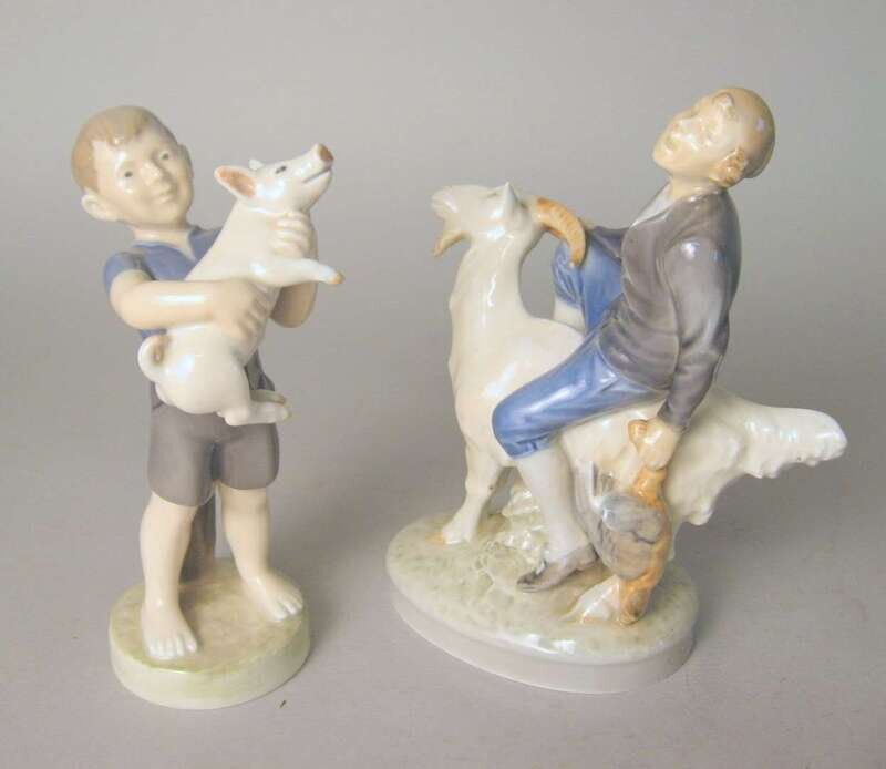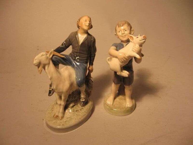 The first modeled as a boy holding a pig and the second modeled as a boy seated upon a goat. (2).