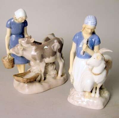 The first modeled as a girl kneeling beside a goat and the second modeled as a girl beside 2 young calves. (2).
