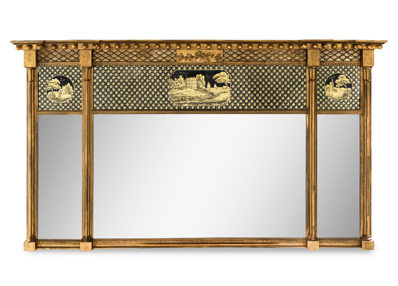A Classical Eglomise Giltwood Overmantel Looking Glass
