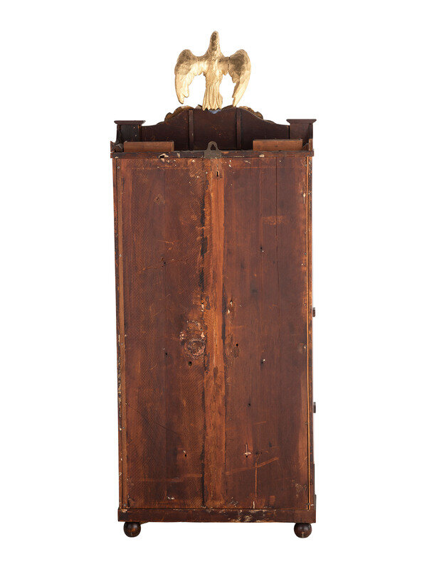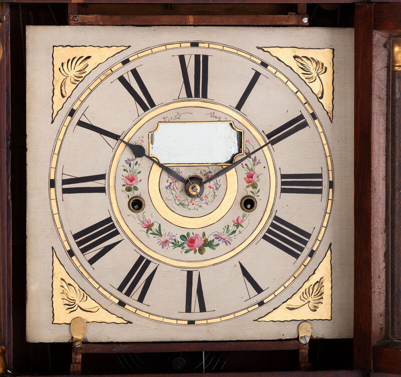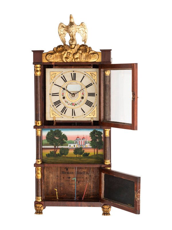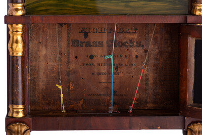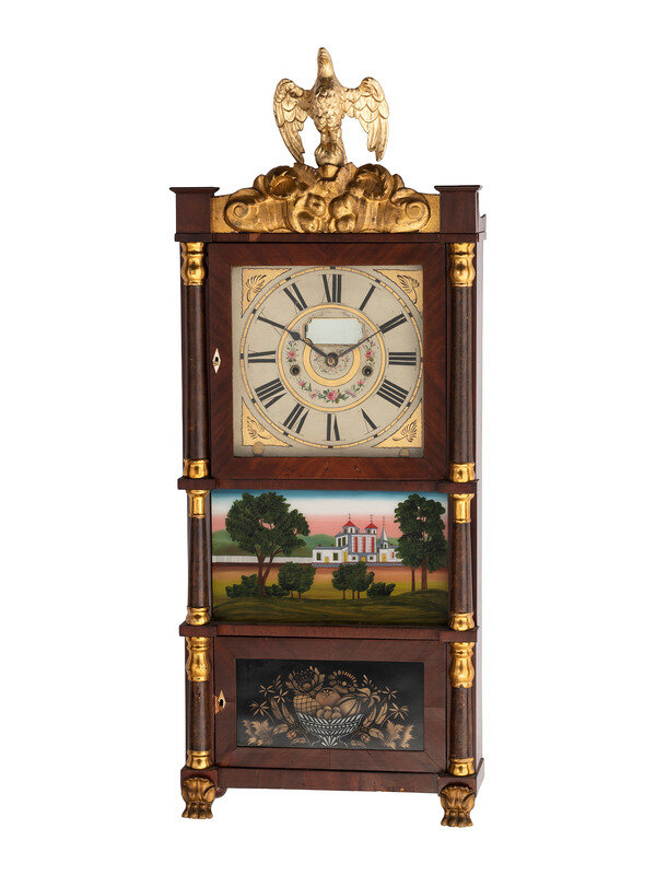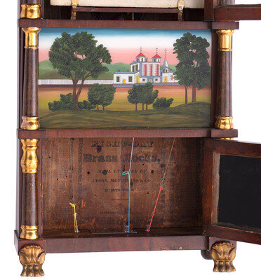 A Mahogany Eglomise and Parcel Gilt Mantel Clock