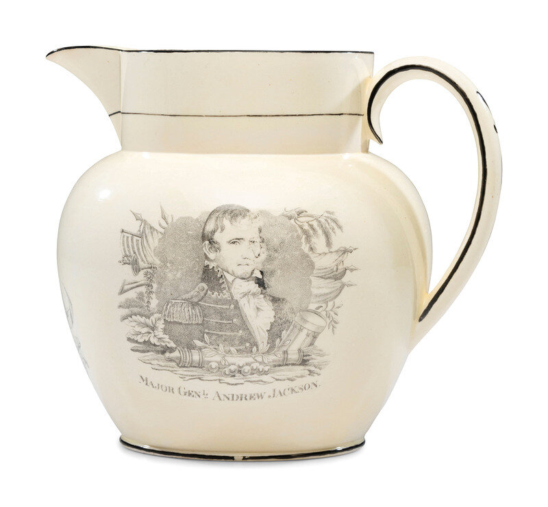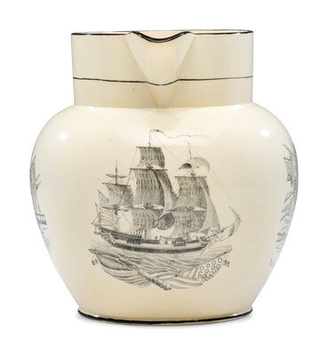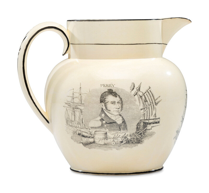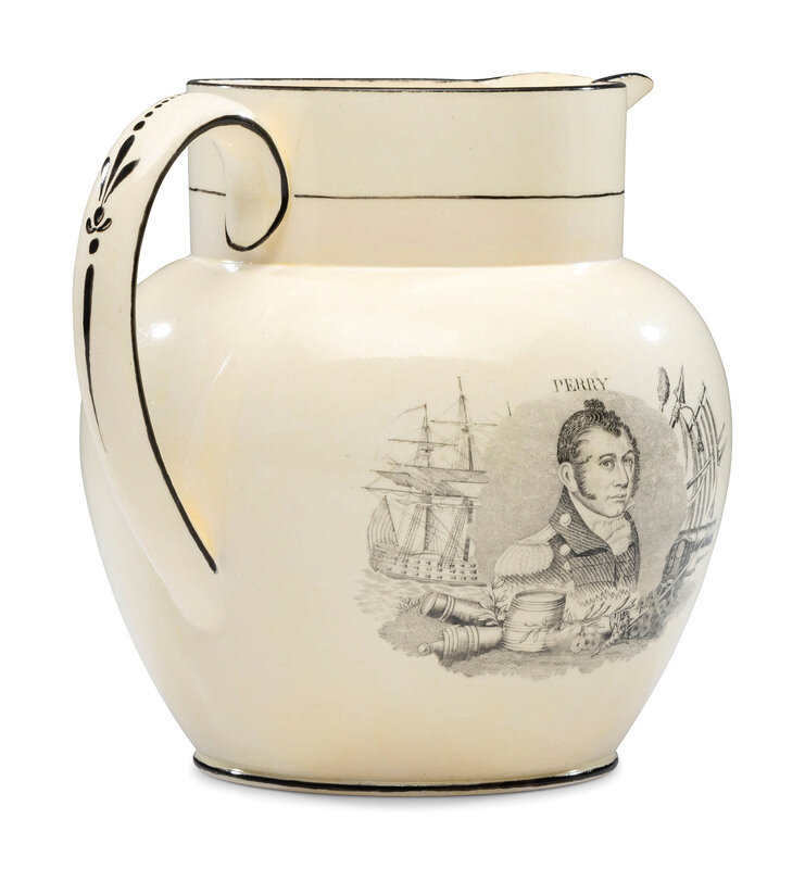 A Very Rare Staffordshire Transfer-Print Creamware War of 1812 Portrait Pitcher