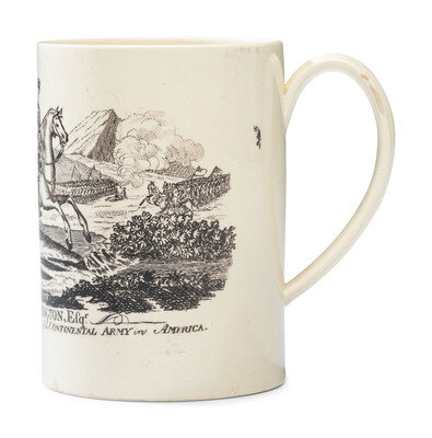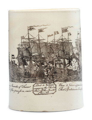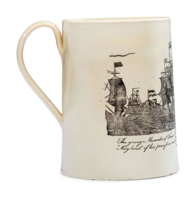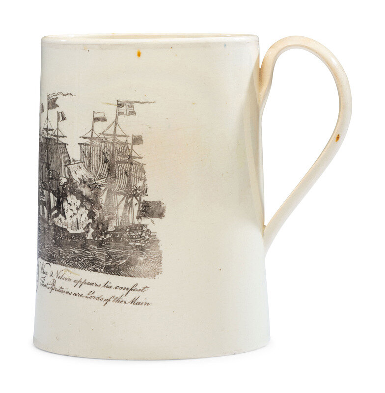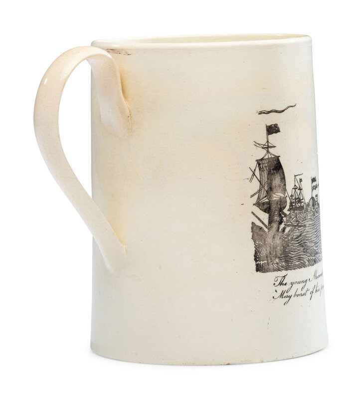 A Creamware Transfer-Printed Tankard with Naval Battle Scene