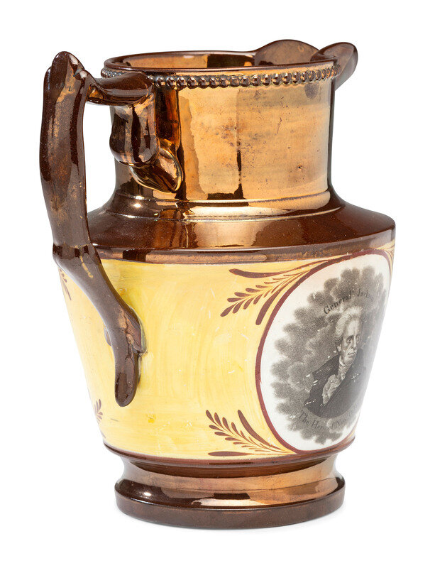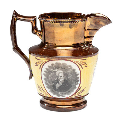 A Staffordshire Transfer-Printed Copper Lustre 'General Jackson Hero of New Orleans' Pitcher