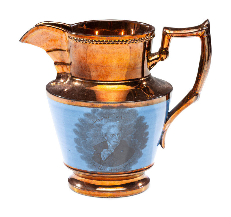 A Staffordshire Transfer-Printed Copper Lustre 'General Jackson Hero of New Orleans' Pitcher