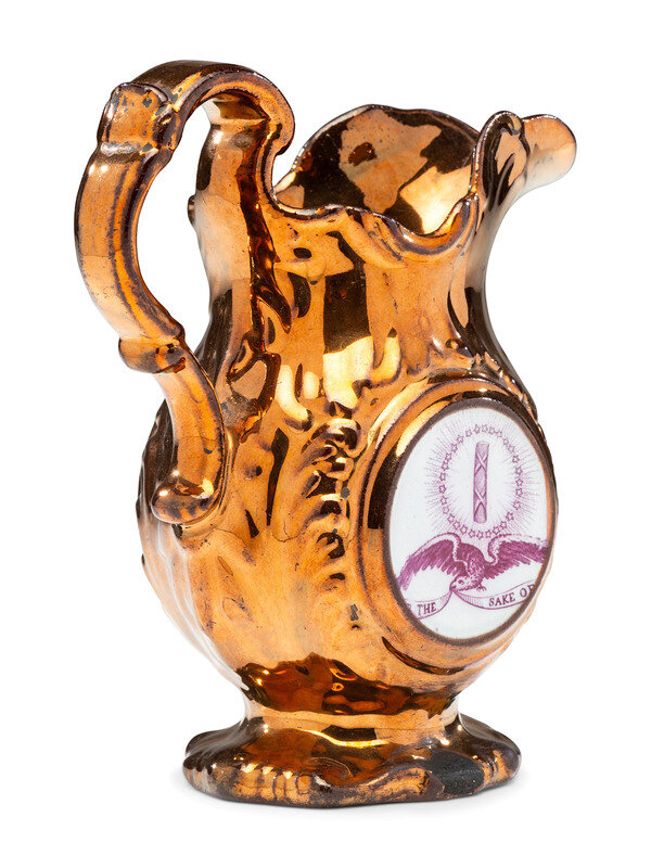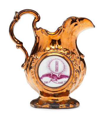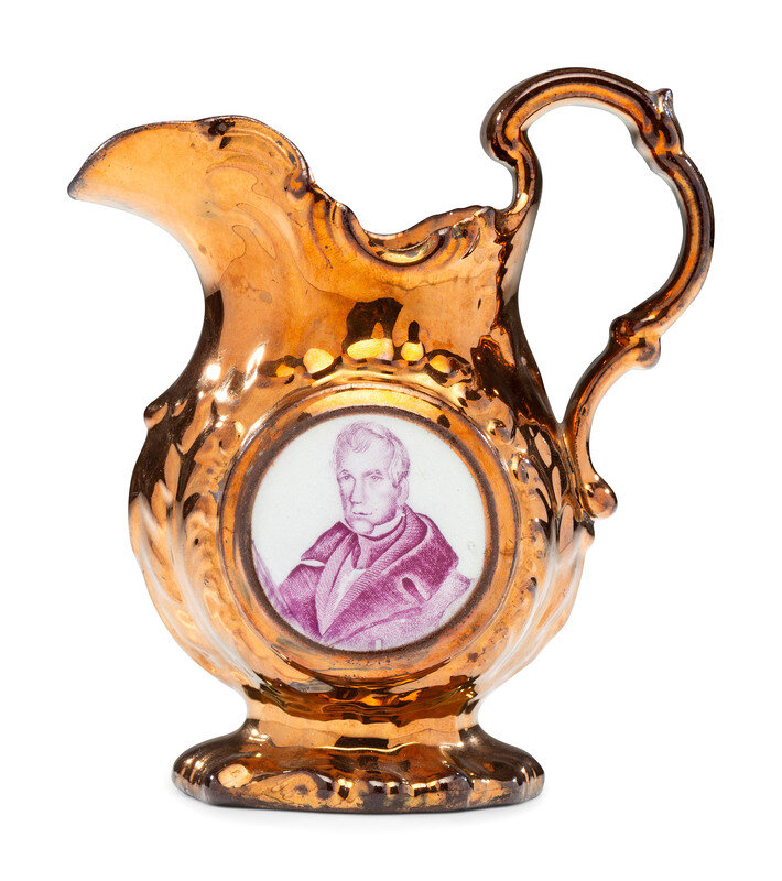 A Staffordshire Transfer-Printed Copper Lustre 'William Henry Harrison' Cream Pitcher