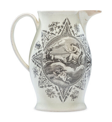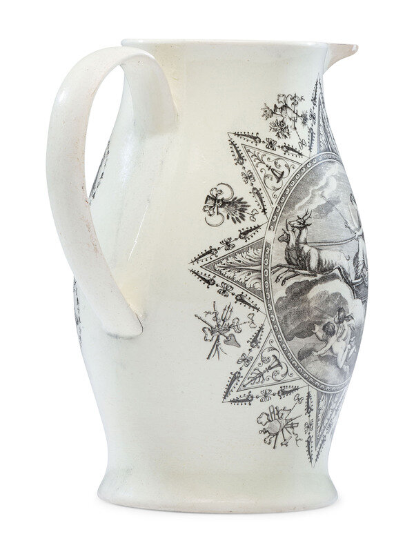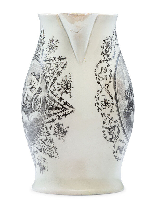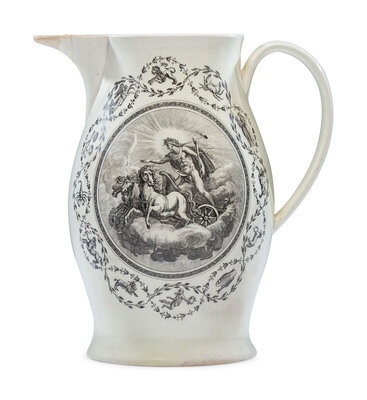 A Liverpool Transfer-Printed Creamware Pitcher with Apollo and Diana