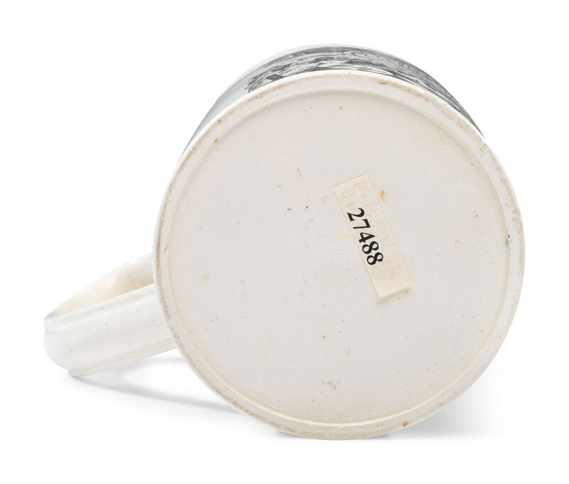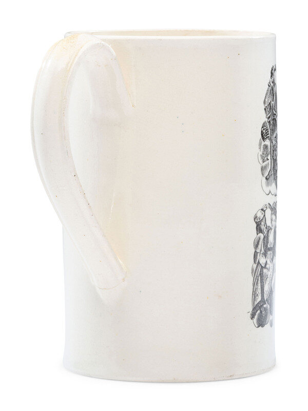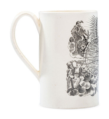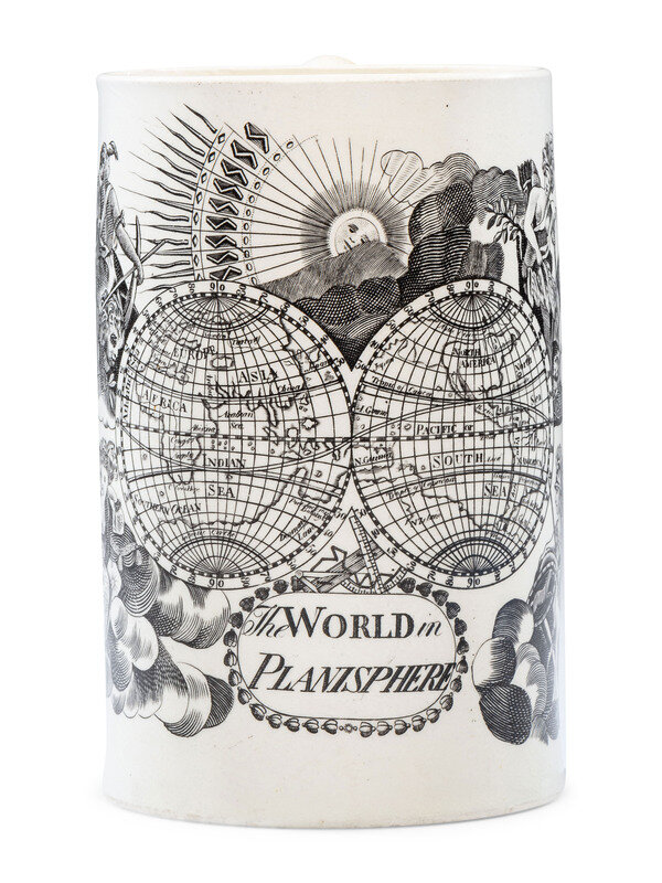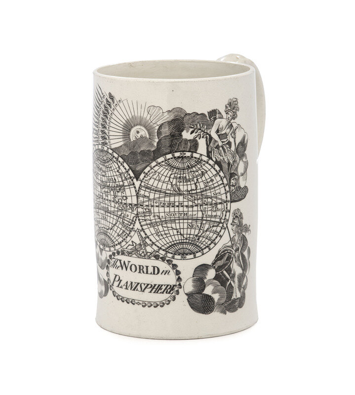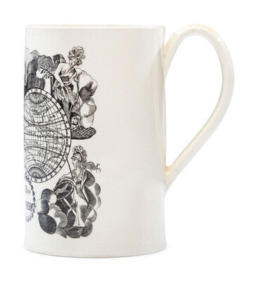 A Liverpool Transfer-Printed Creamware 'World in Planisphere' Mug