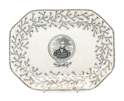 A Rare Staffordshire Transfer-Print Creamware 'Hero of the Thames' William Henry Harrison Platter