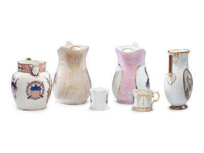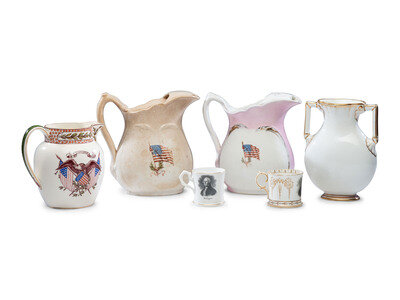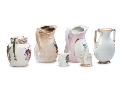 Six Porcelain Political Portrait Pitchers and Mugs