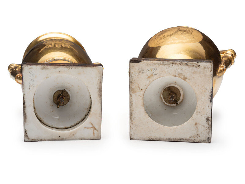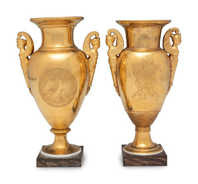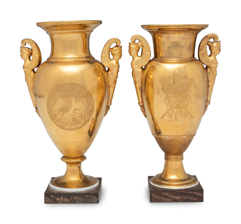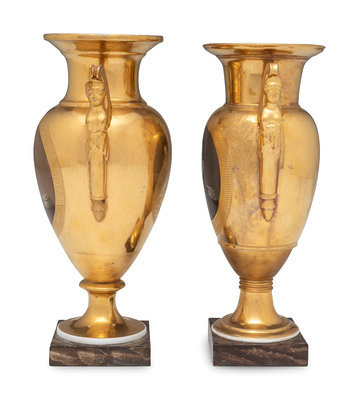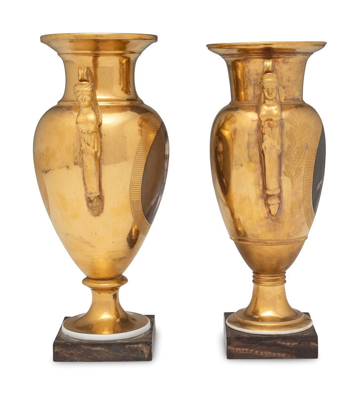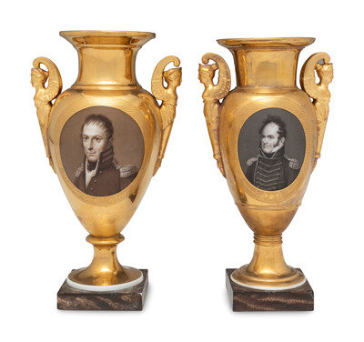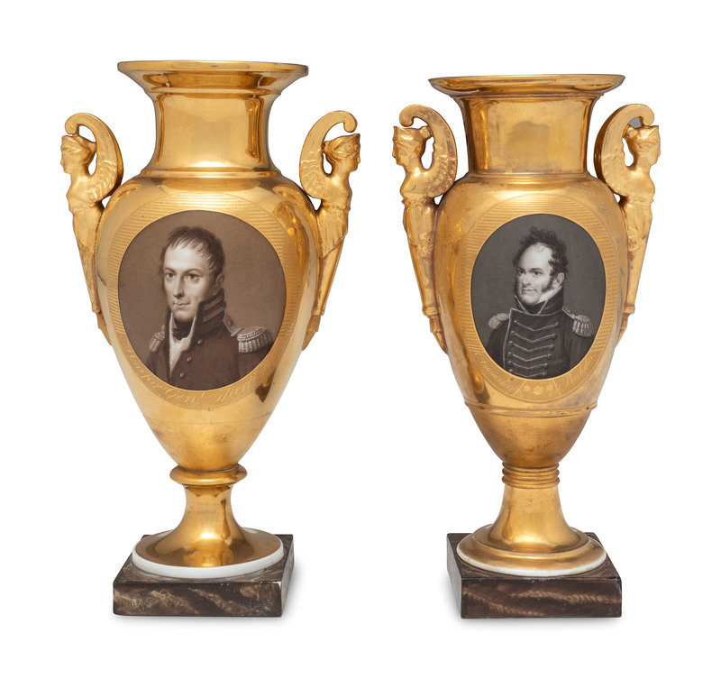 Two War of 1812 Gilt and Hand Painted Porcelain Portrait Vases