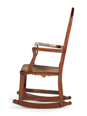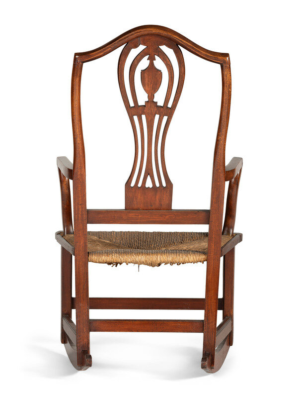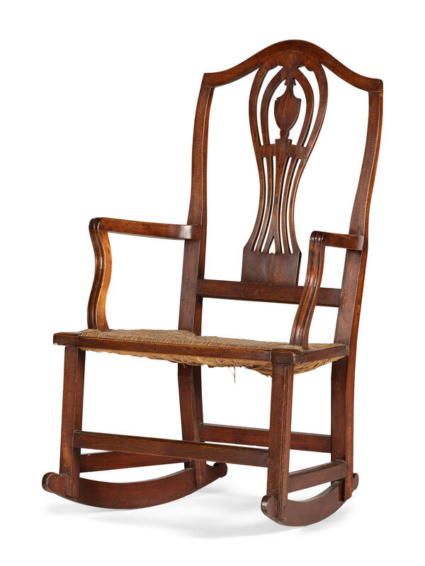 A Federal Heart and Urn Carved Mahogany Rush-Seat Rocking Chair