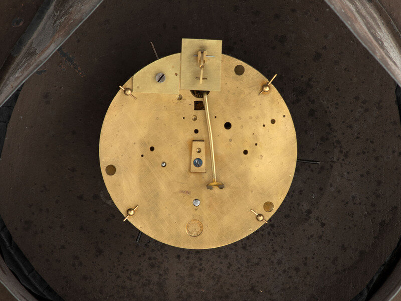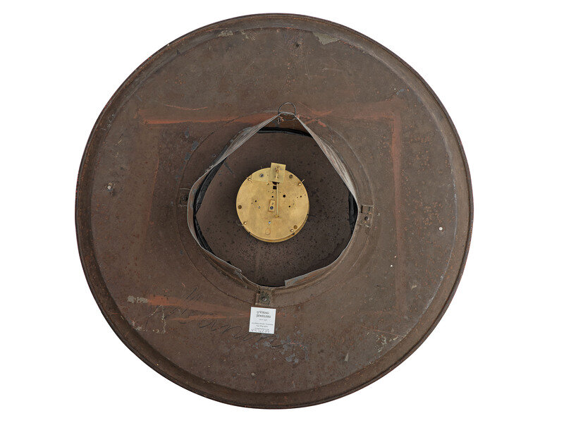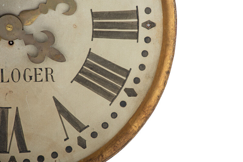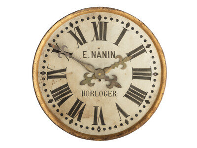 A French Painted and Parcel Gilt Tin Shop Wall Clock