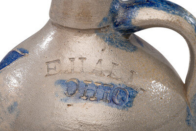A Rare E. Hall 'Ohio' Cobalt Decorated Stoneware Jug