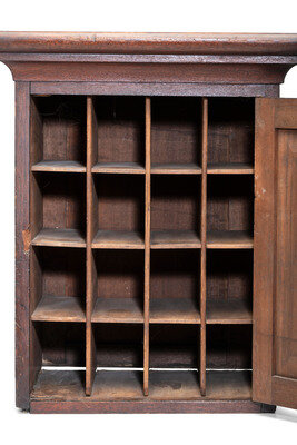 A Stoneware Merchant's Walnut Hanging Cupboard