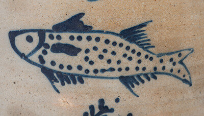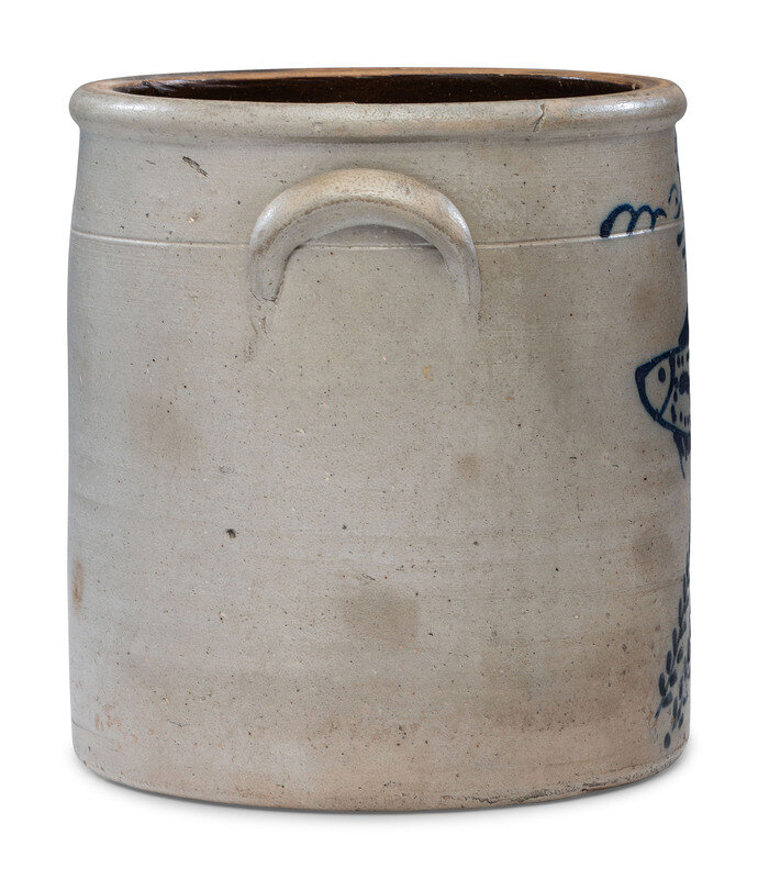 A P. H. Smith Three-Gallon Cobalt Decorated Stoneware 'Fish' Crock