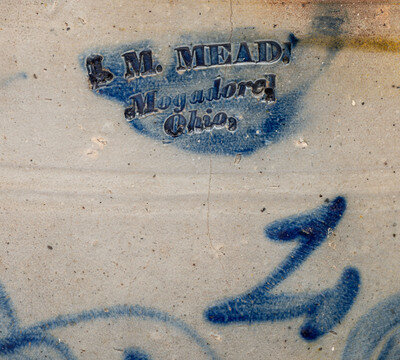 An I. M. Mead Two-Gallon Cobalt Decorated Stoneware Crock
