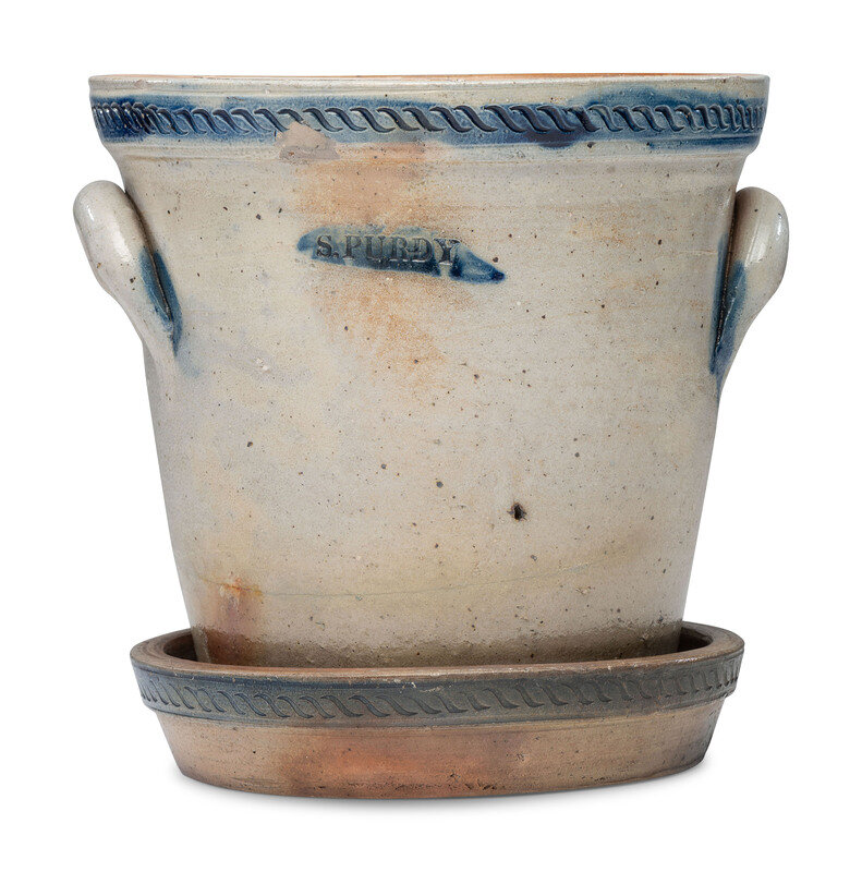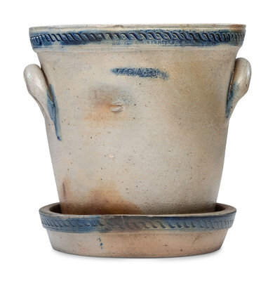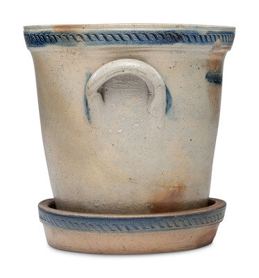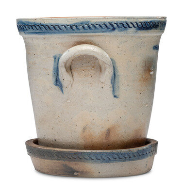 A Rare Zoar Cobalt Decorated and Incised Stoneware Flowerpot