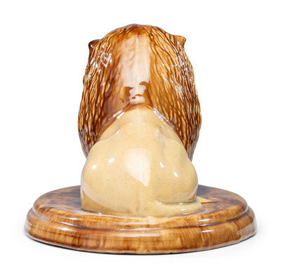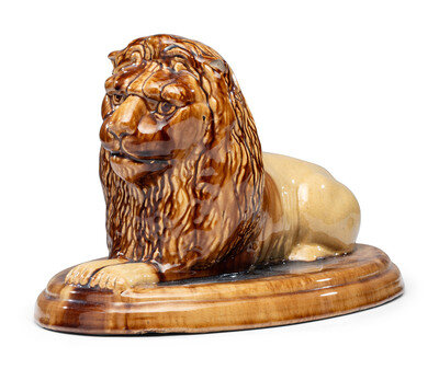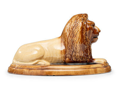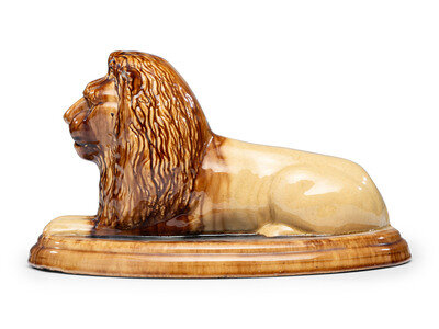 A Yellowware Recumbent Lion Figure