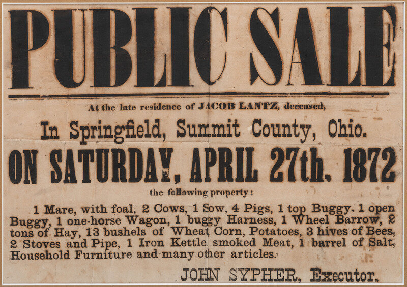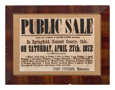 A Printed Auction Broadside Promoting a Farm Auction