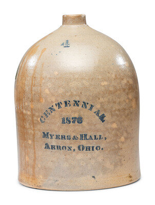 A Myers and Hall Four-Gallon 'Centennial' Stencil Decorated Jug
