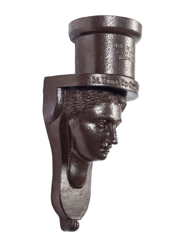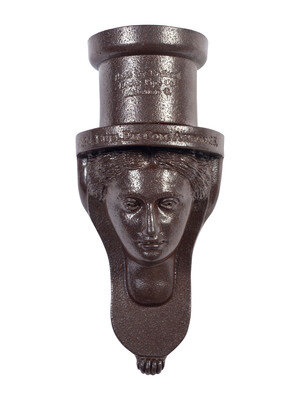 A Glazed Sewer Tile 'Liberty Head' Hanging Match Holder