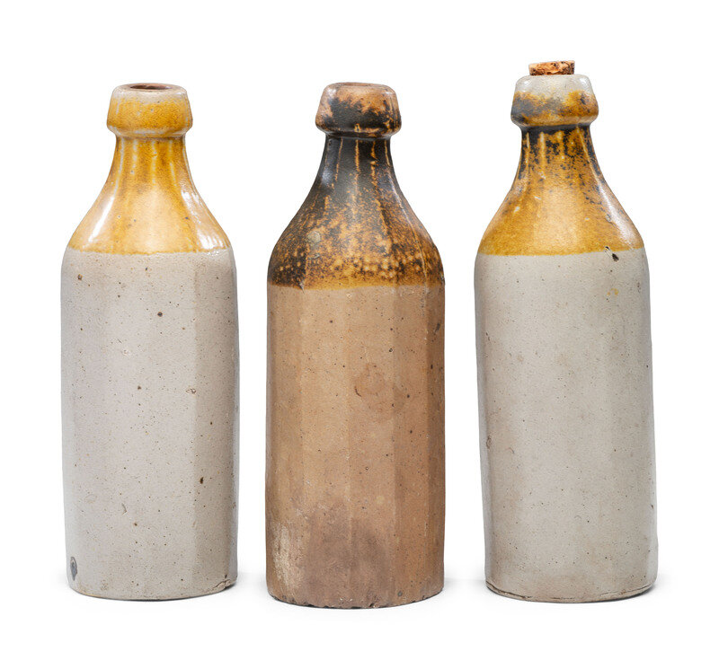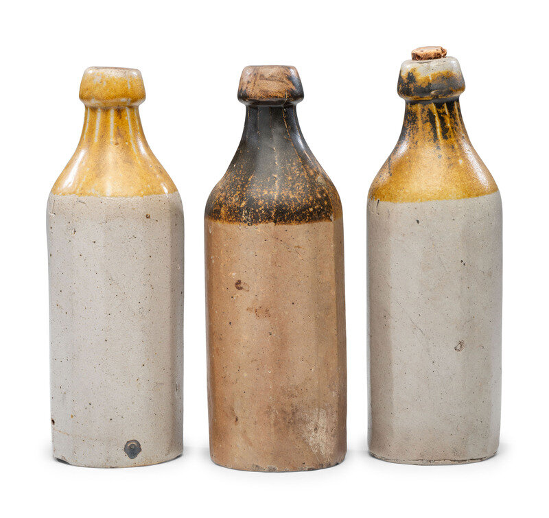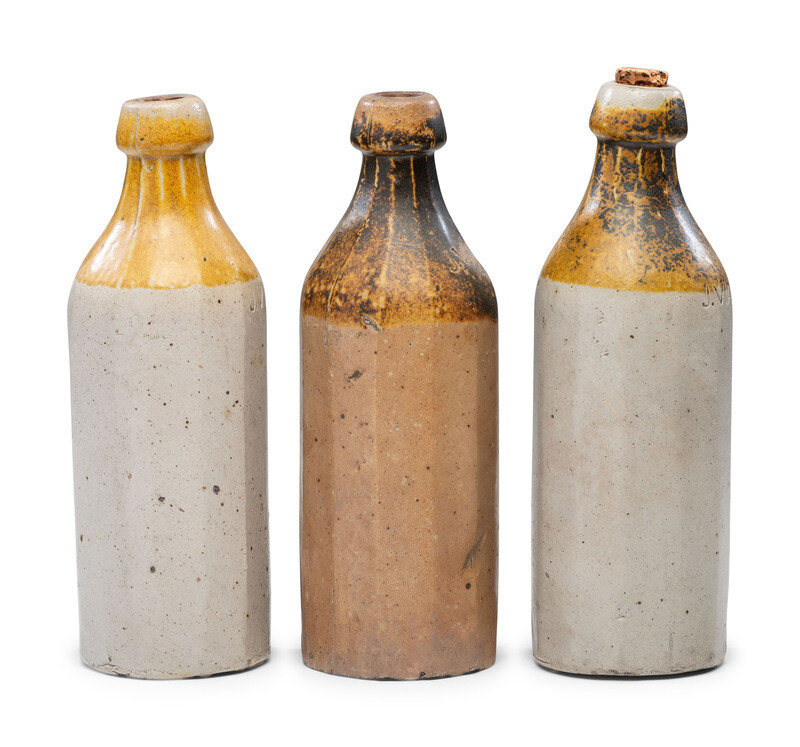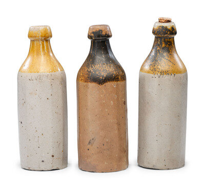 Three J. Viall Stoneware Beer Bottles