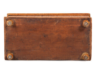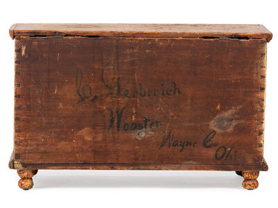 This chest likely belonged to a Caroline Gerberich (1842-1923) of Smithville, Ohio. Gerberich was born in Lebanon County, Pennsylvania and moved west to Ohio with her family in 1871.